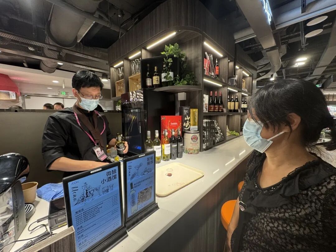 在营销转型方面,焕新后的永旺天河城店不仅将成为季节性新品的首发门店,还将定期举办新品月度品鉴会。同时,店内设置了吧台调酒和咖啡品鉴区,每周推出主推商品,顾客可先品尝后购买。而定期举办的技术教学活动是另一大亮点,餐饮区将变身为厨艺学堂,让顾客在购物之余还能学习新技能,增加与品牌的互动。